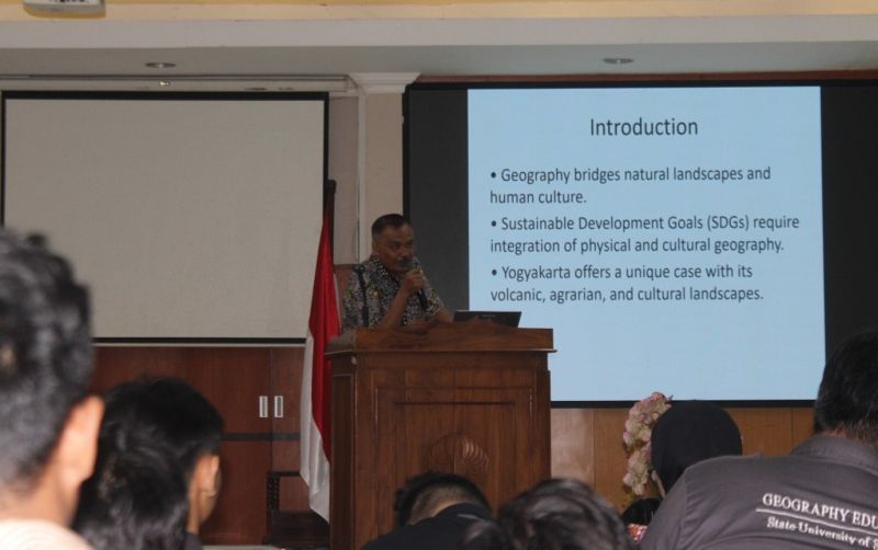 Pembukaan acara turut diwarnai presentasi mahasiswa Program Studi Pendidikan Geografi angkatan 2022 dan 2024. Dalam sesi tersebut, mahasiswa memaparkan beragam hasil riset yang menyentuh isu-isu aktual, mulai dari perubahan iklim, pariwisata berkelanjutan, hingga kearifan lokal.